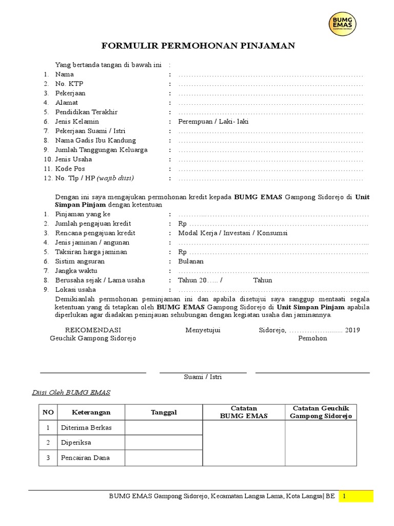 Formulir Permohonan Kredit