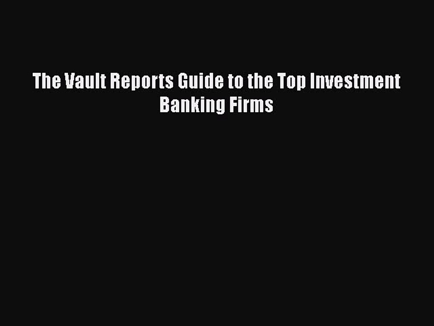 Pdf The Vault Reports Guide To The Top Investment Banking Firms